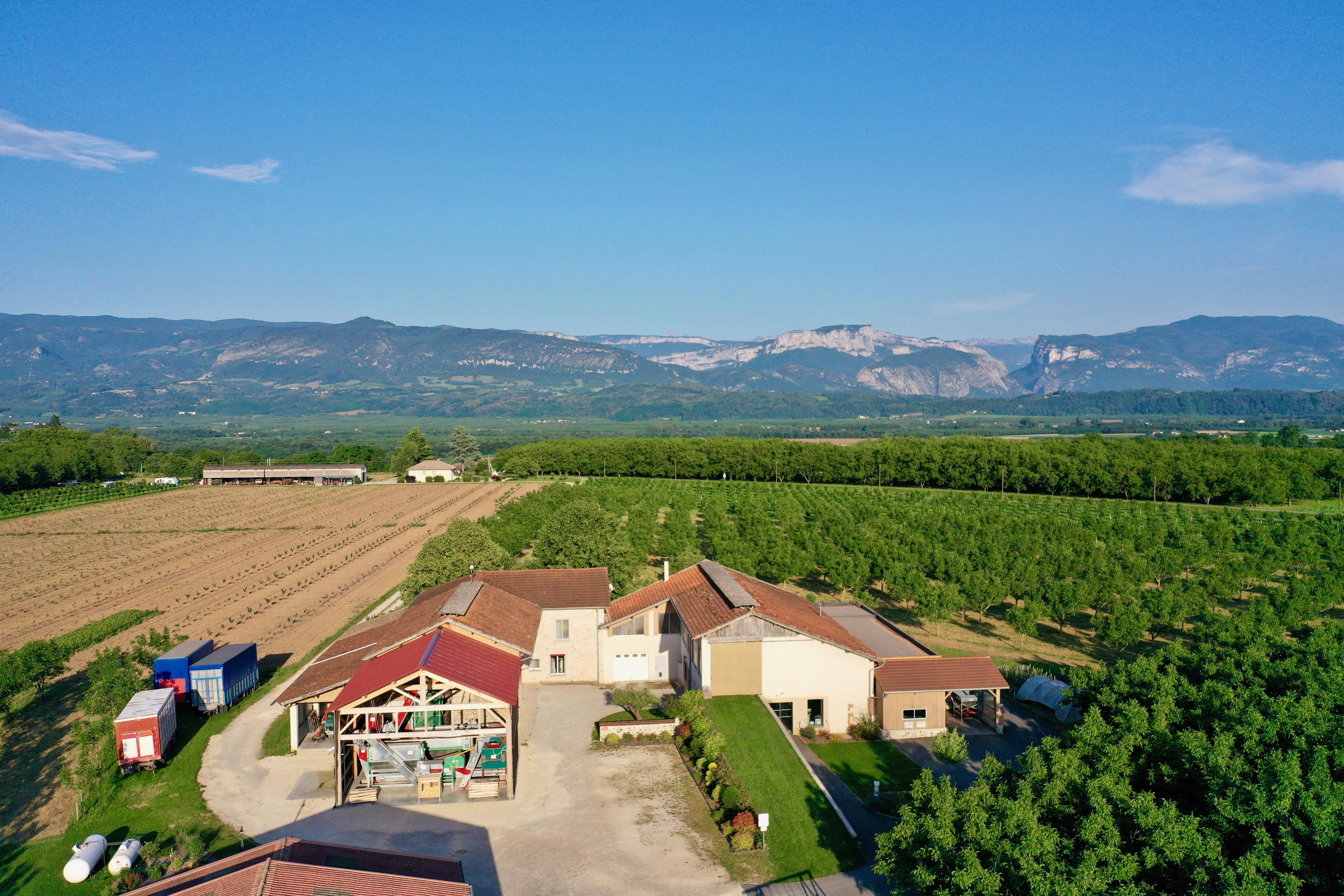Nous vous accueillons pour la nuit sur une zone enherbée en bordure d'une de nos parcelles de noyers bio, au coeur de notre exploitation nucicole et à proximité de notre moulin à huile de noix.