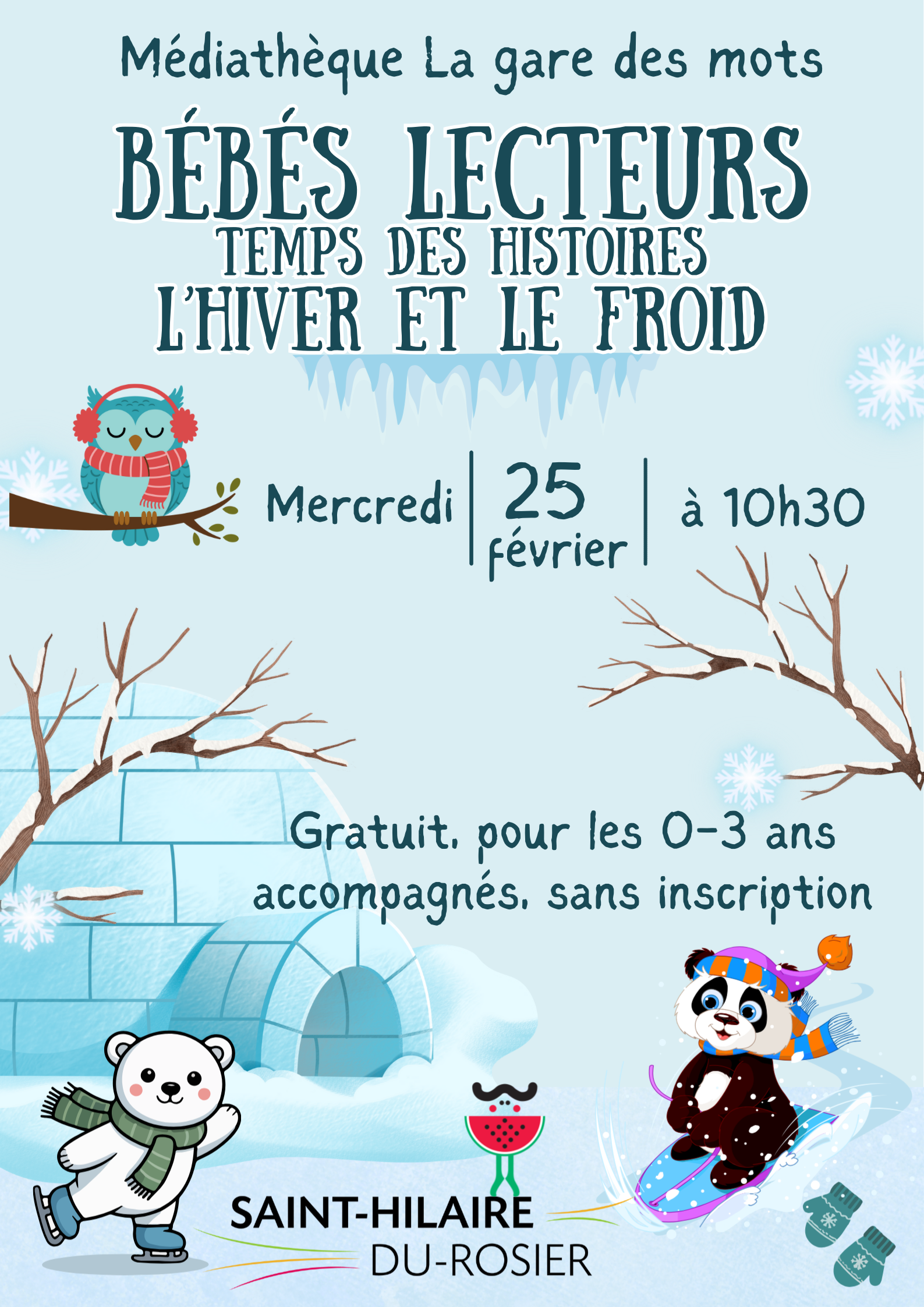 Temps des histoires des Bébés lecteurs autour de l'hiver et du froid. Gratuit, pour les 0-3 ans accompagnés, sans inscription